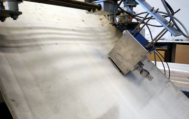 View of the model MK30LP sensor measuring a felt from the bottom side The grey Aluminum stick is for manual operation only. For on-line use the sensor is mounter rigidly. The sensing surface is on the opposite side. This sensor has an extremely wide moisture range and the depth of measuring is 5 mm. See the list of current variants Visilab reserves the right to modify the look and feel and operational characteristics of the products without any prior notice.